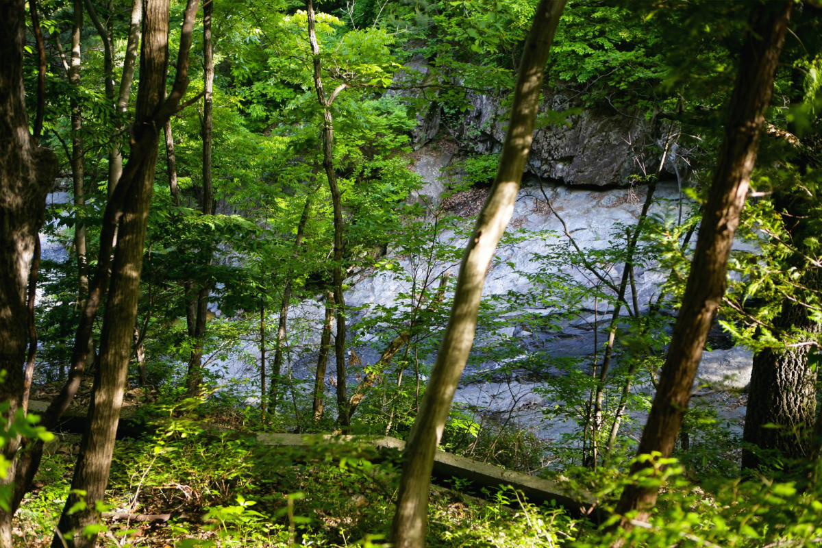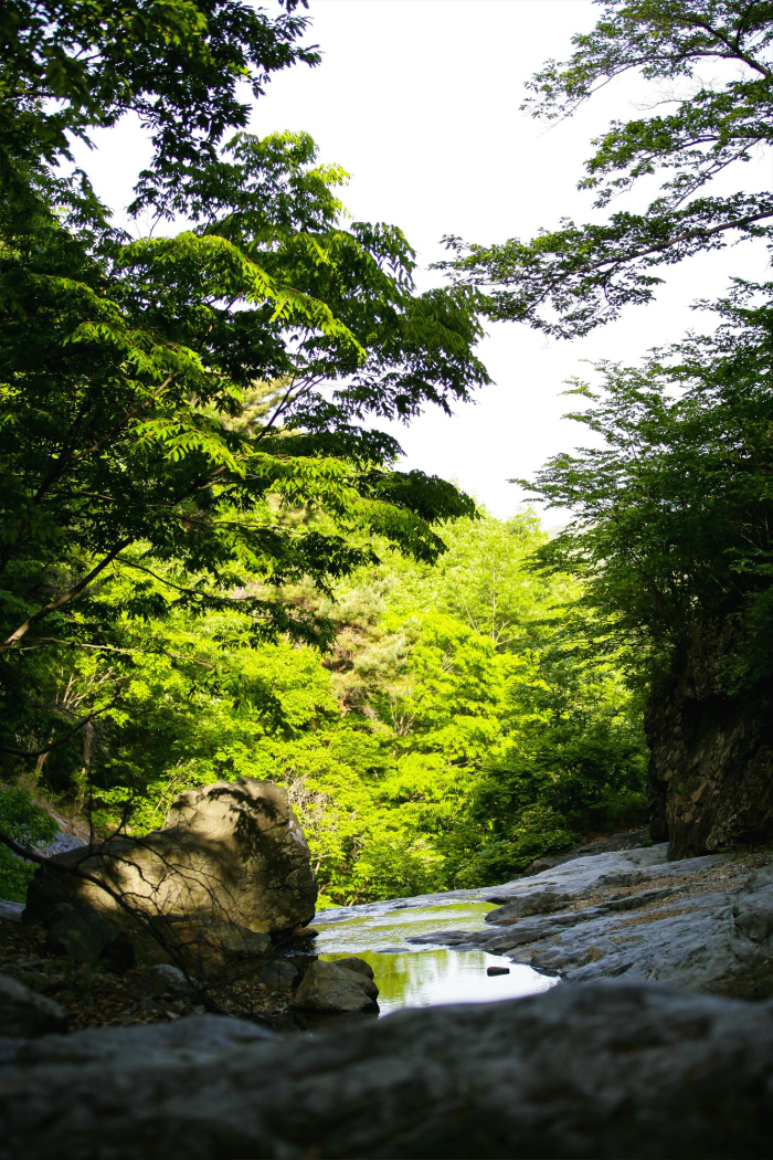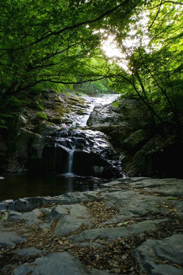 폭포 앞에서 하류쪽을 바라본 모습입니다 사진만으로 봤을떈 무더위 식히려 올라가서 쉬기에는 괜찮아 보입니다 ^^