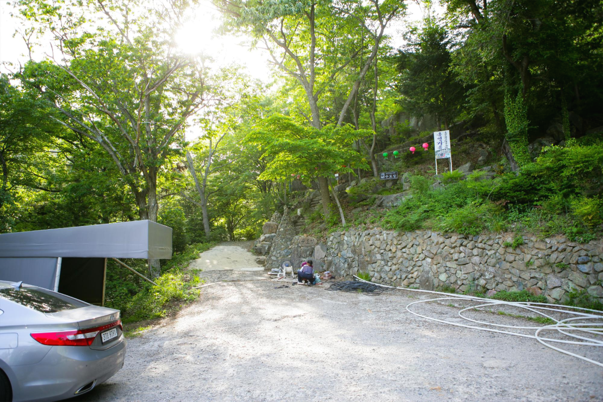 여기가 수도암 주차장입니다 대략 10대 이하를 주차 할수 있으니 주말에는 가급적 아래 저수지근처에 주차하는게 좋을거 같아요 앞에 보이는 작온 길을 따라가면 폭포로 갈수 있습니다
