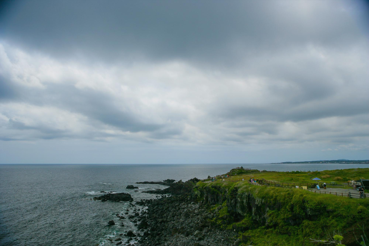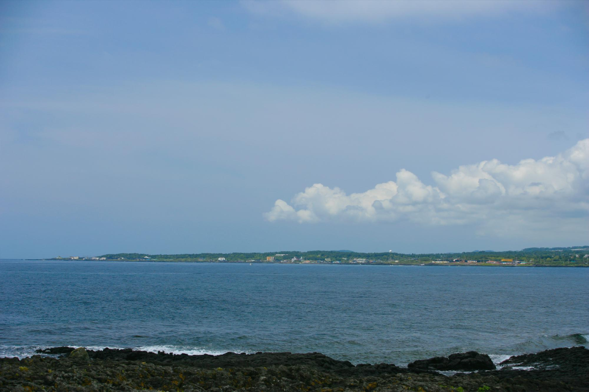 광치기 해변에서 바라본 일출봉 반대편입니다.. 크게 볼 건 없습니다 저렇게 한라산을 제외하곤 거의 평지로 이루어졌다는게 육지사는 사람에겐 조금 생소한 풍경이죠