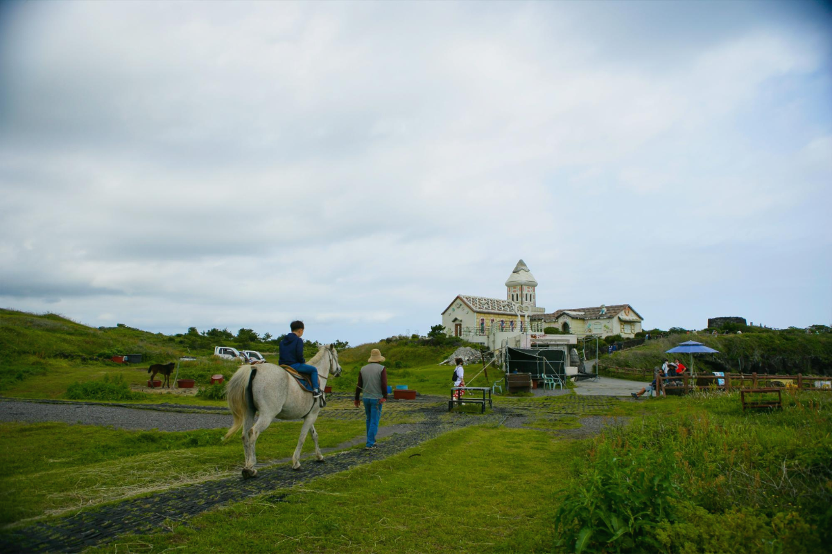 섭지코지 올라 가면 있는 오천 원짜리 말타기입니다 시간은 3분 정도인데 몇 해째 가격도 안 오르고 부지런히 계속 걸으십니다. 우리 애들 2번씩 탓습니다. 오전에 다른데서 몇만원씩 주고 오래 타 놓고선 말입니다 ㅎㅎㅎ