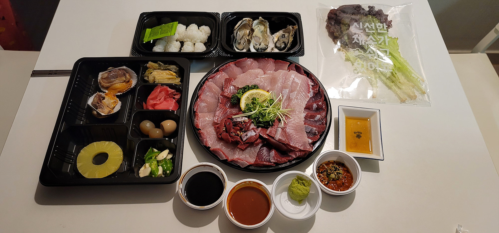 기장읍에 배달만하는 횟집이 있더군요 검색하다보니 나왔는데 후기가 괜찮기도 하고 입맛이 떙기기도 해서 직접 전화로 주문하고 찾으러 갔습니다
