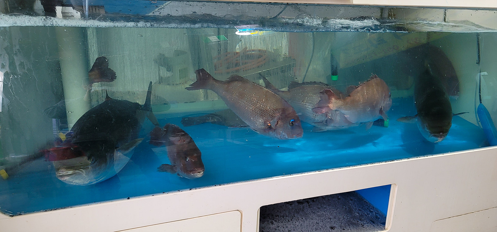 수족관에 덩치 큰 것으로만 잘 넣어놨습니다 못해도 10키로는 훨씬 넘어 보입니다
