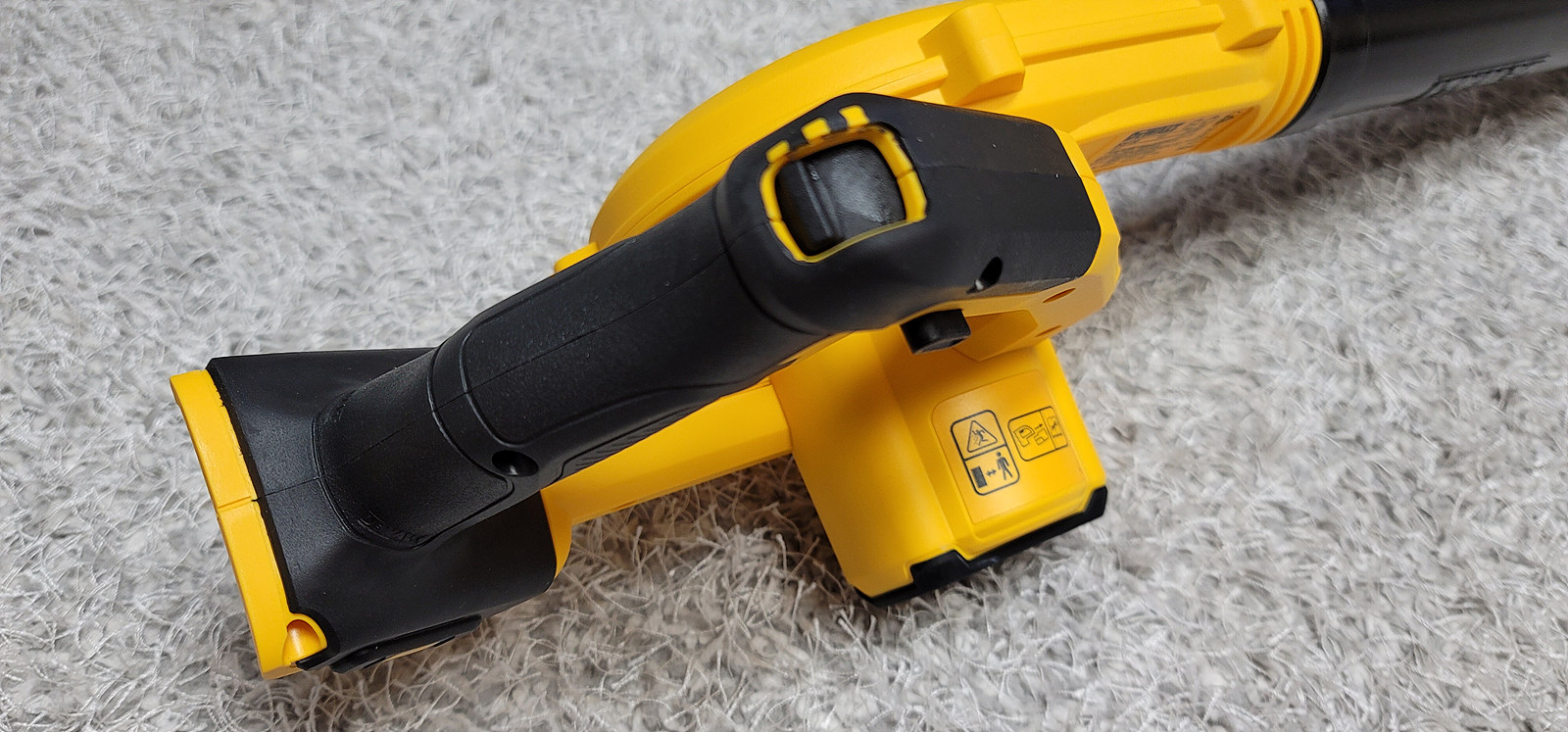 손잡이에 보이는게 3단 스위치 입니다 쓰기 편하게 엄지 손꾸락으로 밀어 올리면 됩니다. 당연히 트리거는 가변형스위치입니다 누르는 만큼 속도 조절은 됩니다만 스위치를 고정해서 트리거를 놓고 사용할떄 3단 조절이 되니 편합니다 지속적으로 약하게 불게 해놓고 양손을 써야 할떄 유용하겠죠?