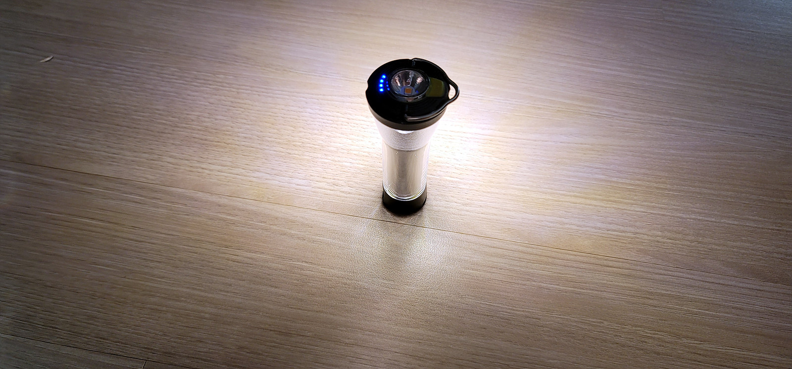 상부 모습입니다 120루멘이라고 해서 최대 밝기로 해보니 간단히 캠핑이나 낚시용으로는 딱 괜찮은 밝기 맞습니다