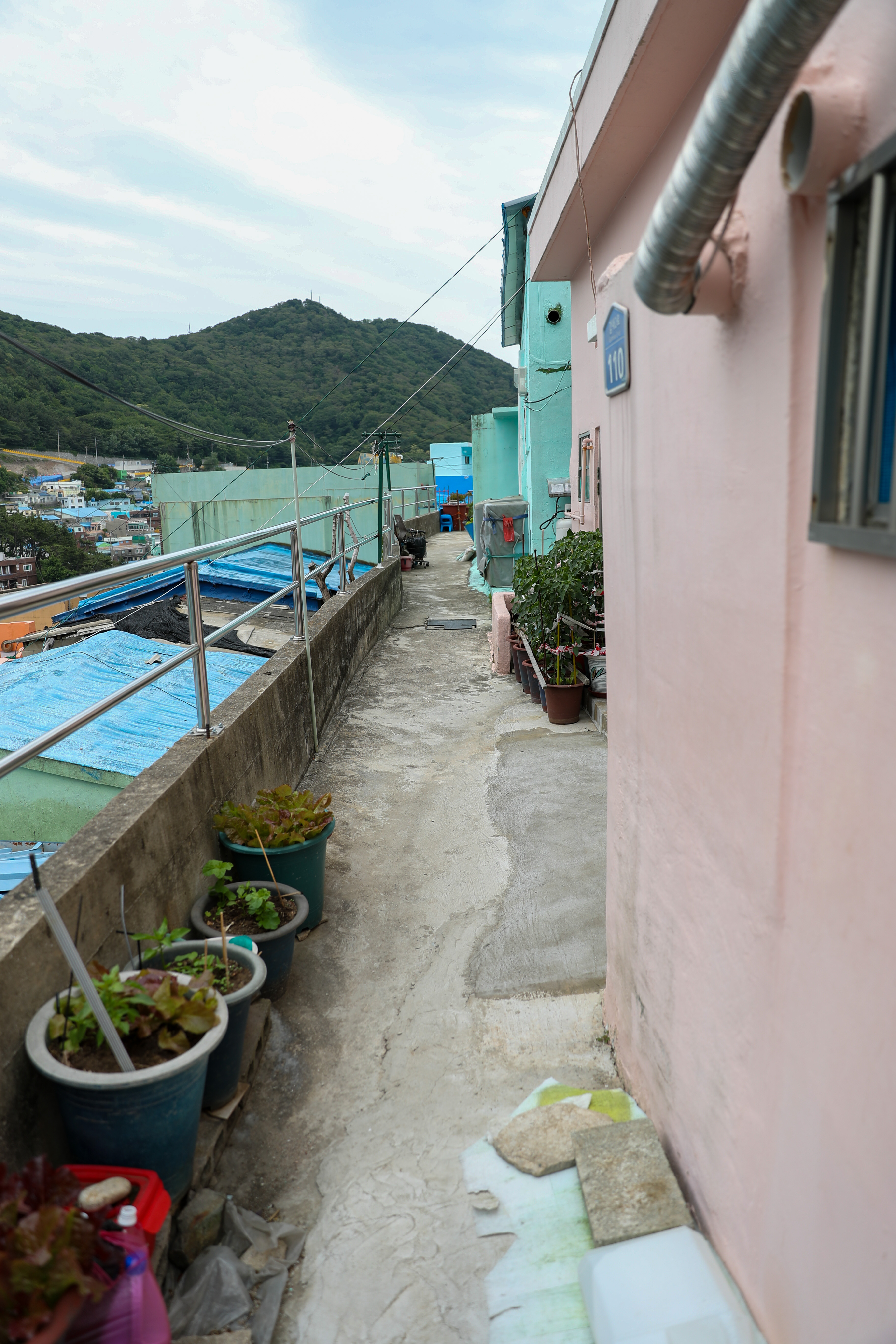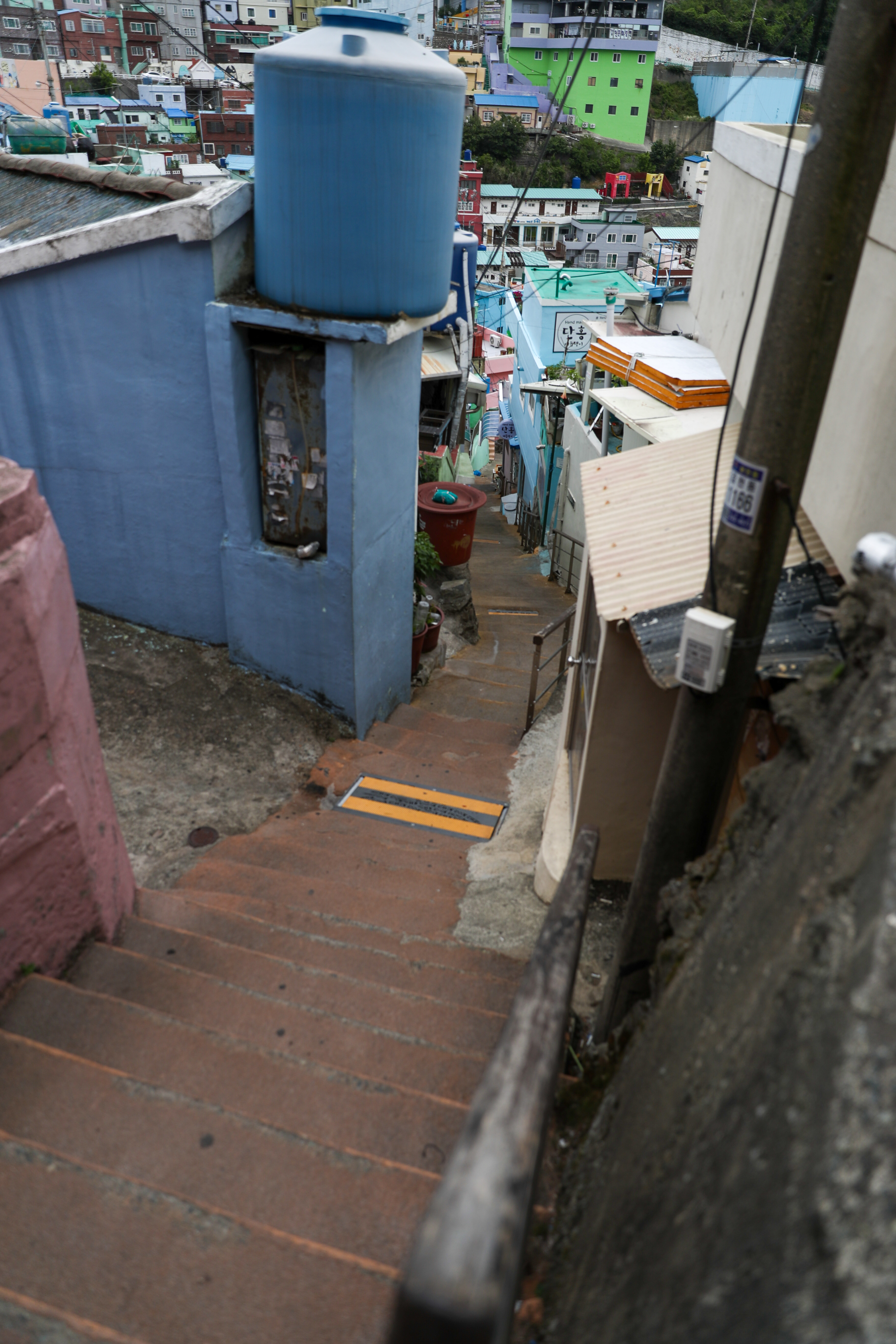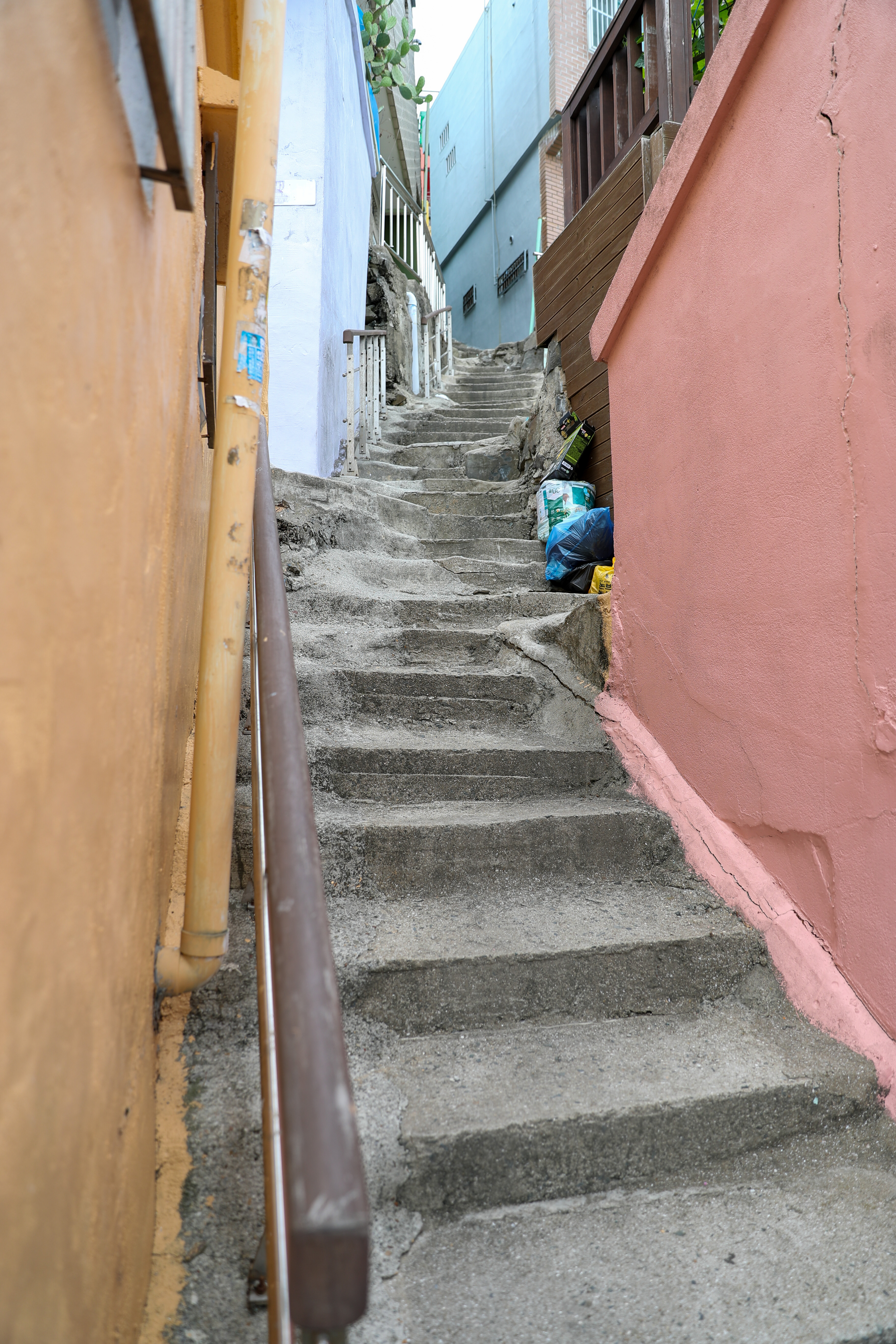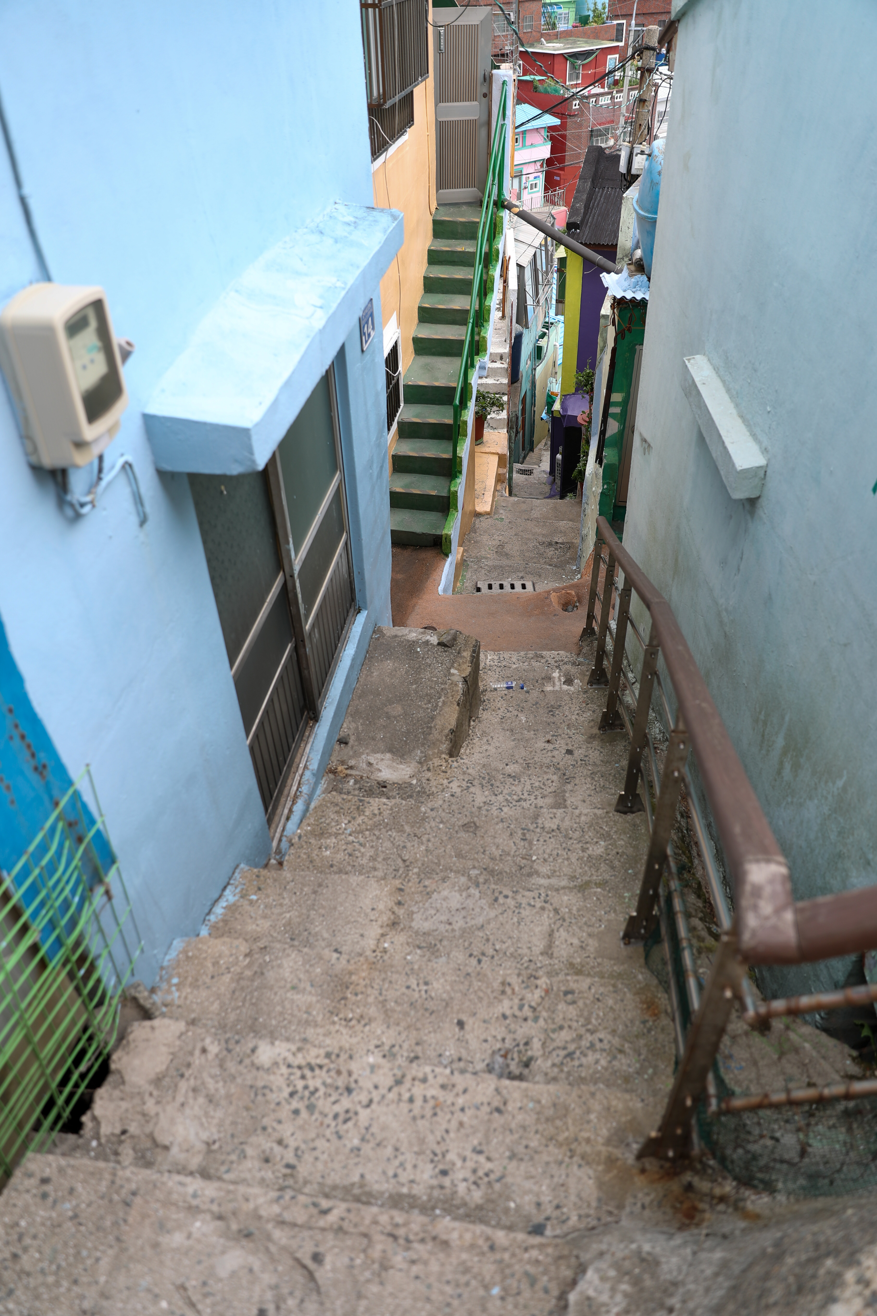 아래로 쭈욱 이어진 골목 계단입니다 중간중간에 옆으로 주택으로 가는 중간중간 골목길들이 있습니다