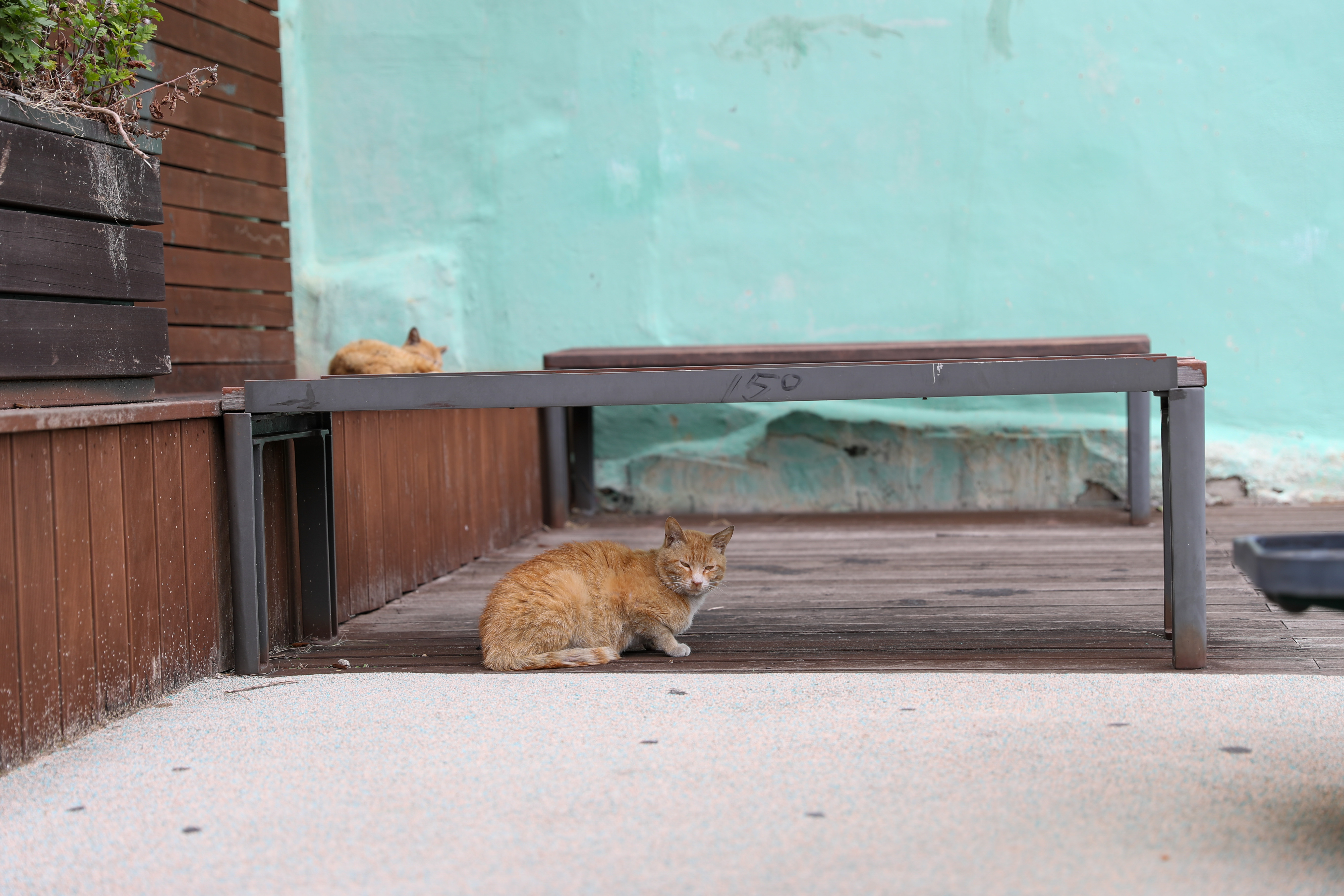 이렇게 건물에도 고양이 동상을 익살스럽게 만들어놨더군요