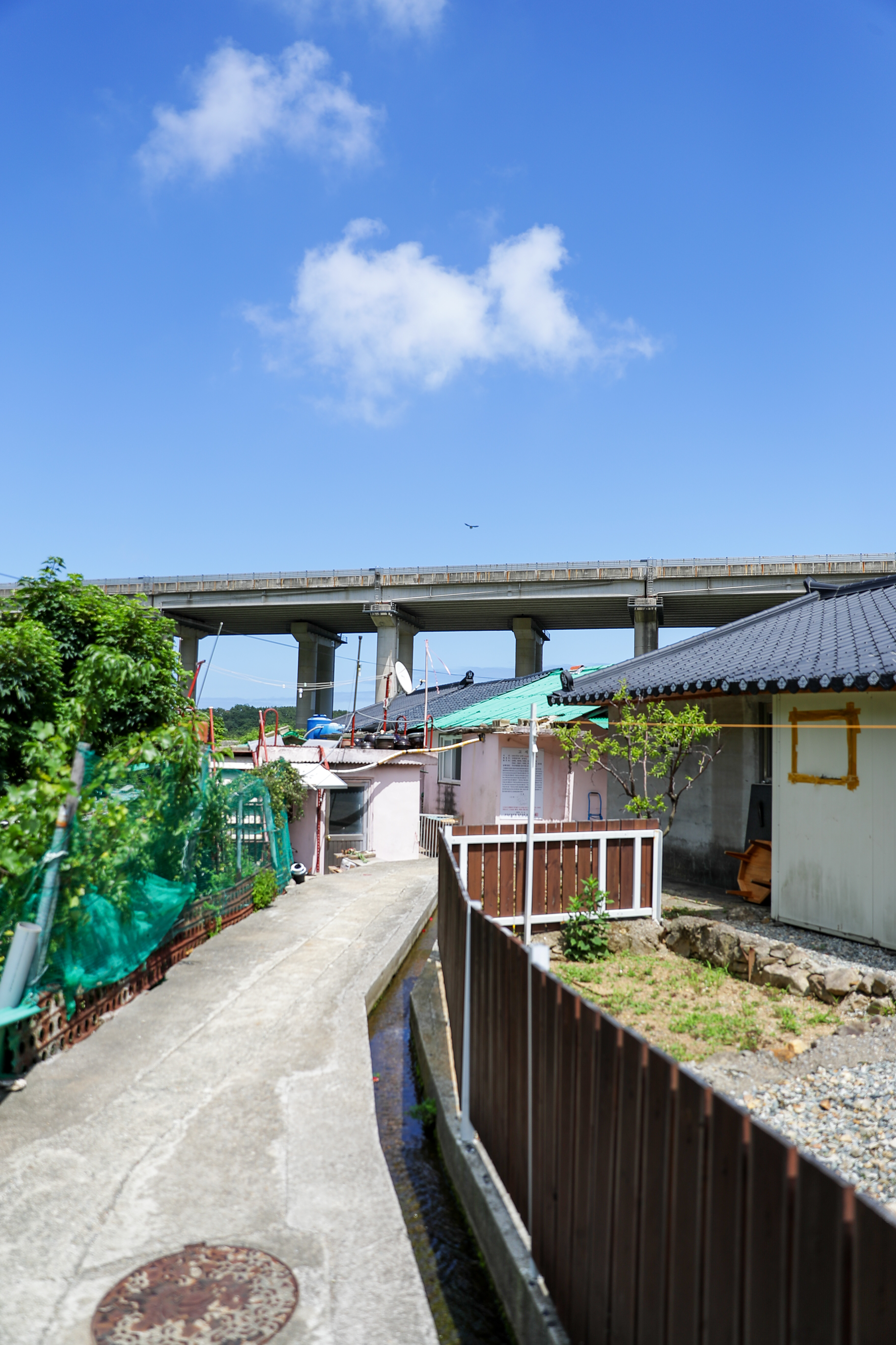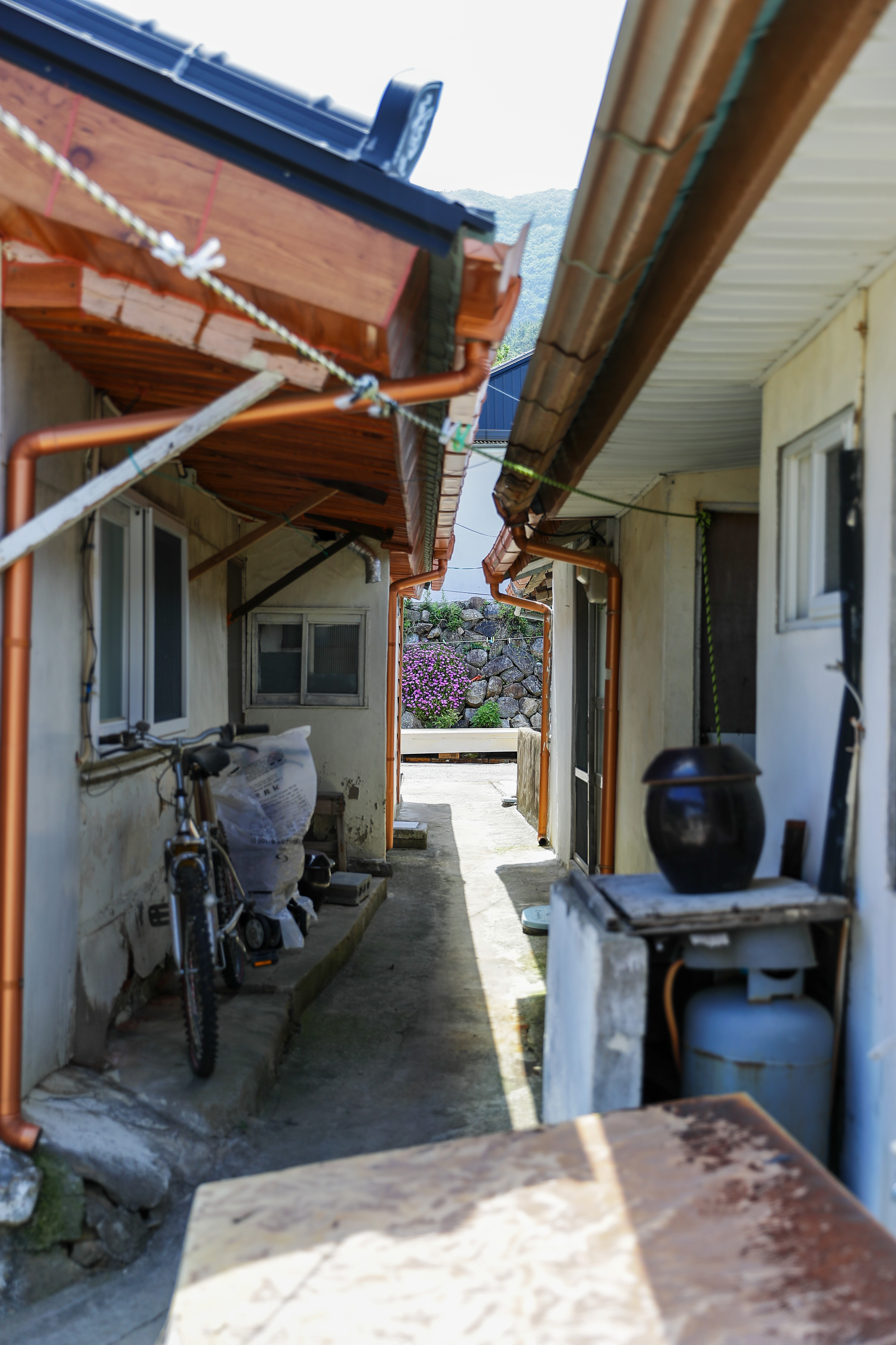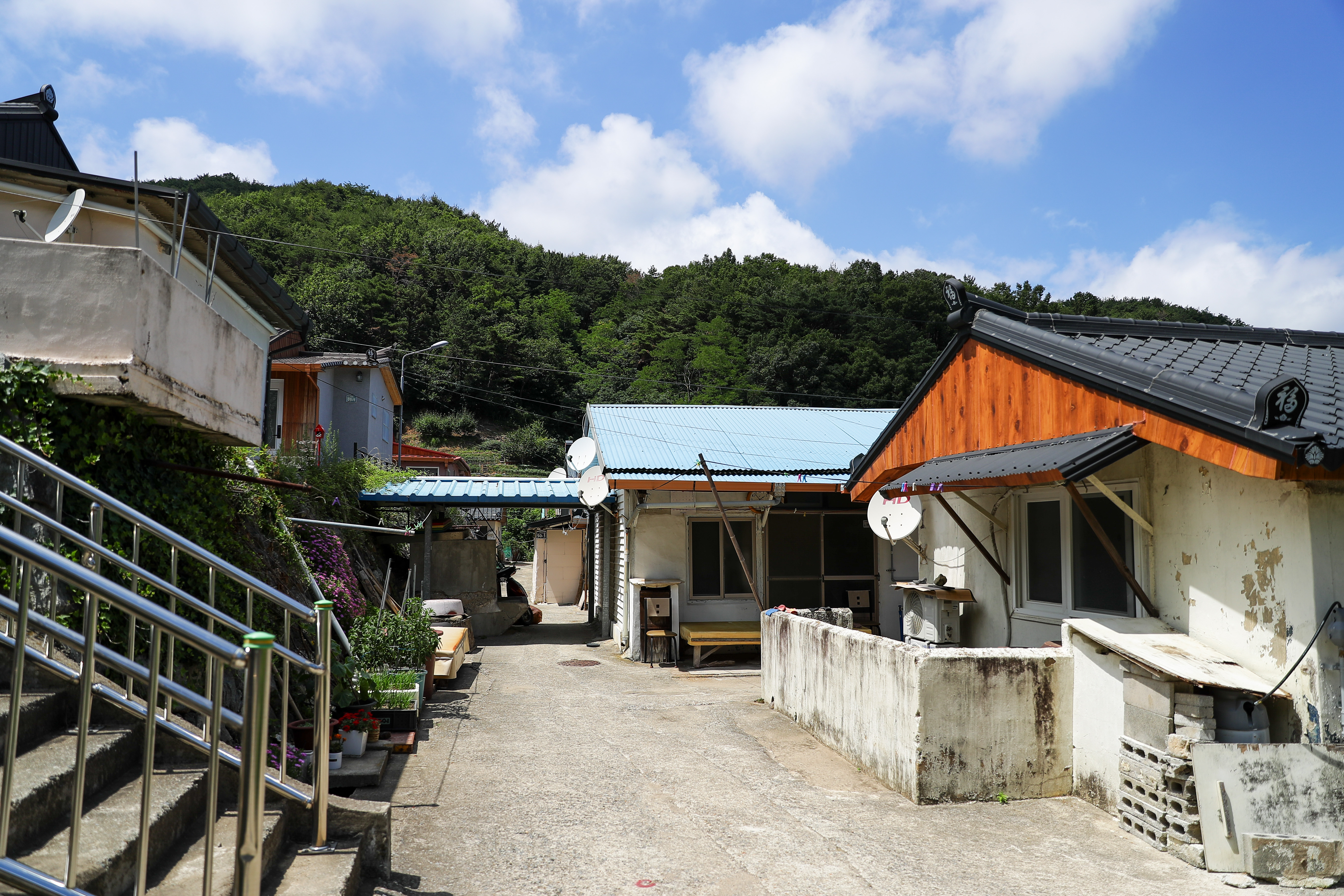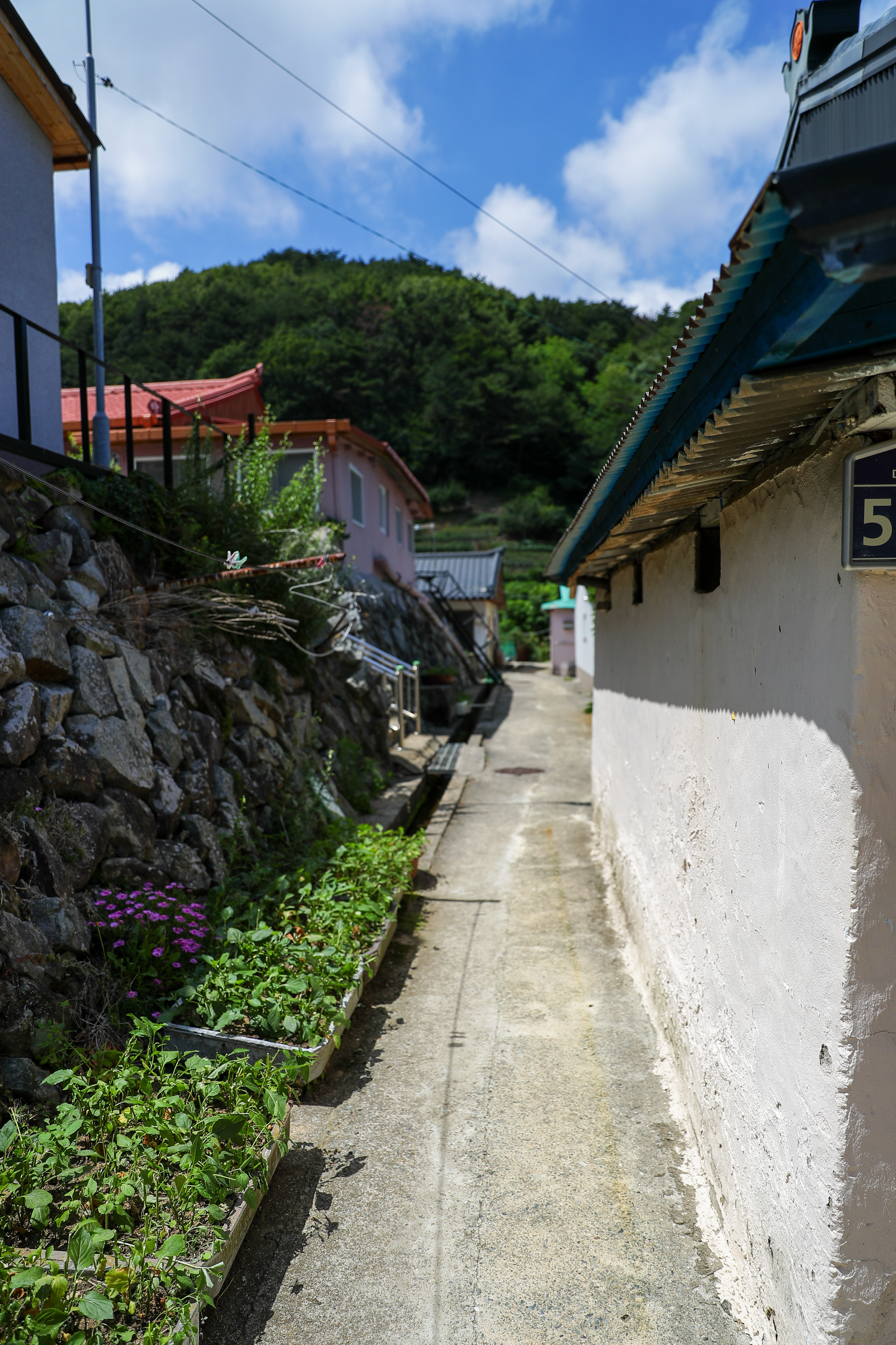 하천 주변으로 석축을 쌓아 마을이 형성이 되어 있는데 재정비를 조금 해서 그런지 지붕 하고 손을 봐 둔 집들이 꽤 많았습니다