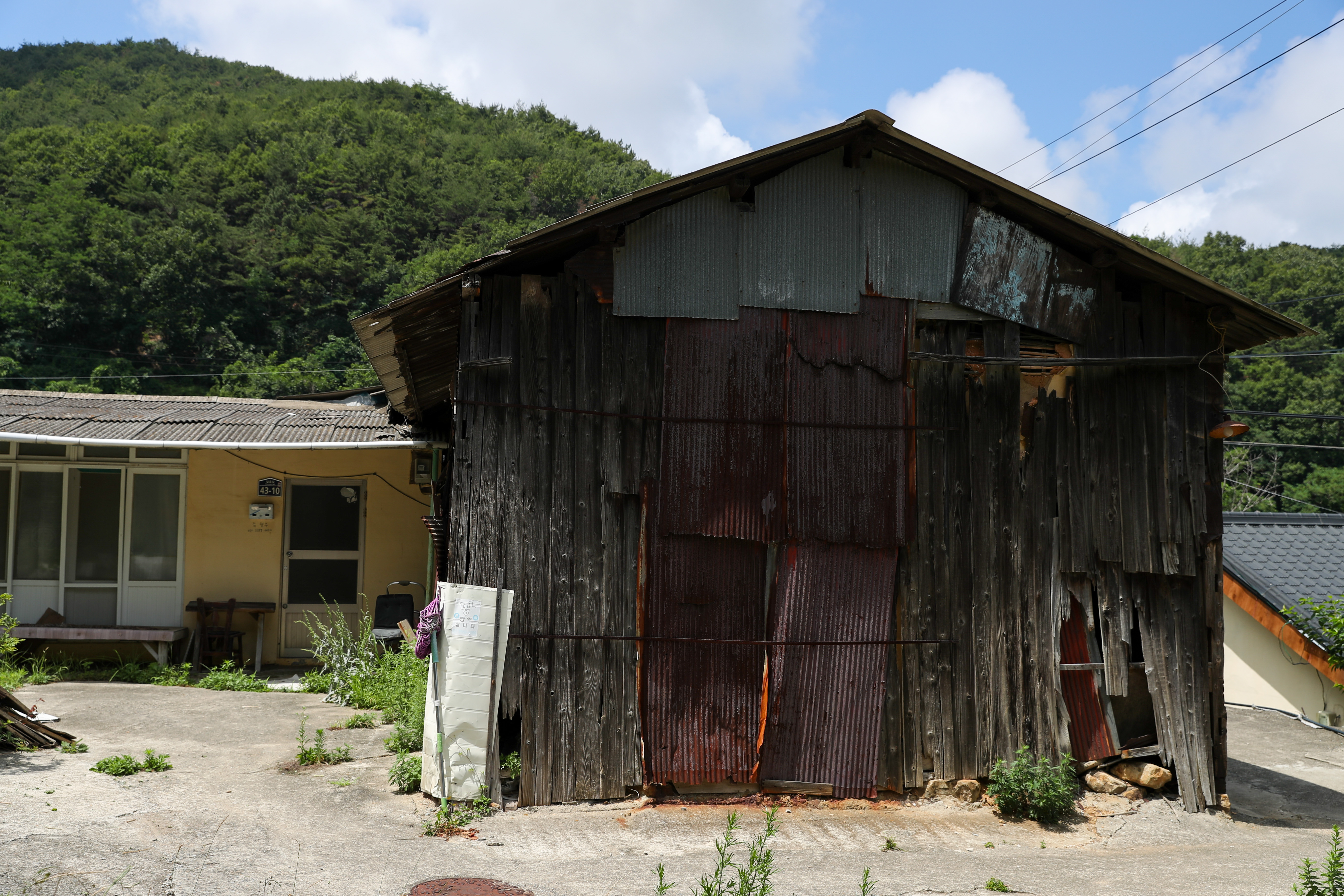 올라가는 초입에 있는 창고? 같은 건물입니다. 언제 적 건물일까요?