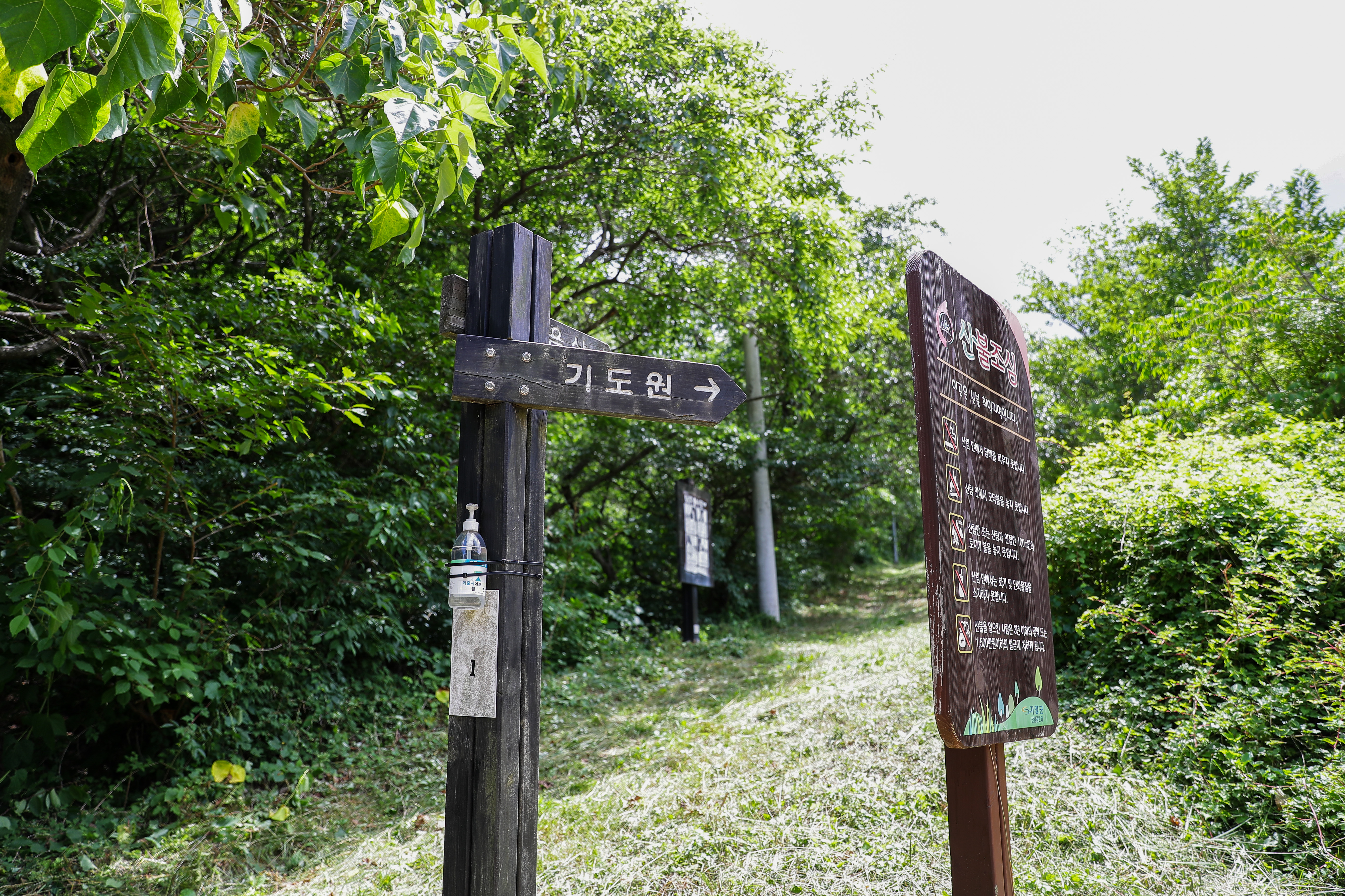 관리동을 지나서 왼쪽 길로 조금 올라가면 만나는 갈림길인데 왼쪽은 달음산 2.4킬로 오른쪽은 기도원이라 적어놨더군요