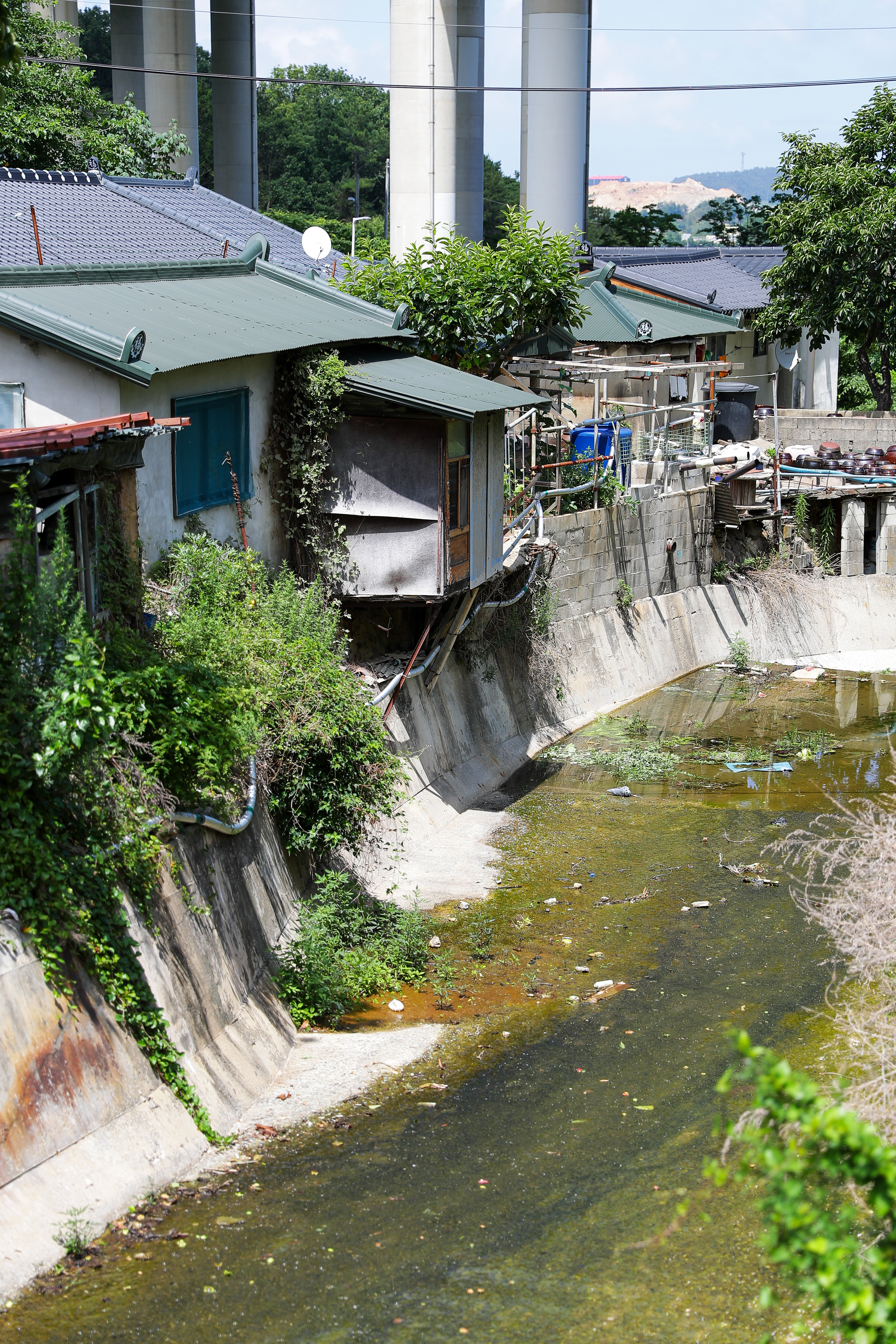 산물 같은 게 내려오면서 각 집의 하수들이 합해져서 아까 그 큰 하천으로 흘러가는 거였습니다